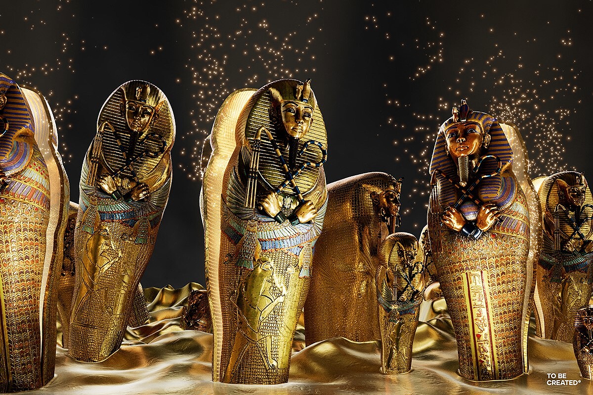 這次的《圖坦卡門:出土百年紀念特展》將以大型浮空投影重現木乃伊化儀式,重現古埃及祭司與工匠在製作木乃伊時,每階段的重點處理,將時間回溯至3000年前,古埃及文明相信需要為了來世的復活,讓身體保持完整。各朝代都會將期精華應用在當代的木乃伊工藝中,信仰、科學認知、服飾以及重點工藝發展等等元素,皆可從中窺探部分。