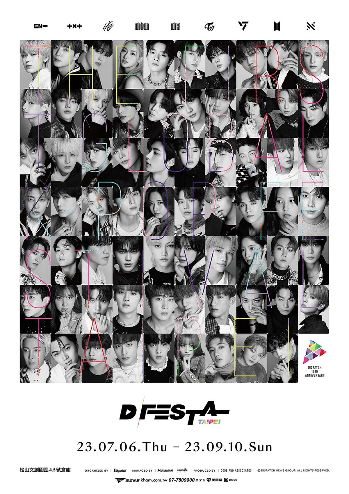 由韓國知名娛樂媒體Dispatch舉辦,最大Kpop特展《D’FESTA》台北站將在7月降臨松菸,邀請了韓國9組超人氣團體:BTS、ENHYPEN、 NCT 127、NCT DREAM、NU’EST、TXT 、SEVENTEEN、STRAY KIDS、TWICE,共69位K-POP藝人參與創作,除了公開大量珍藏照片與影像,還有偶像們親筆寫下的訊息。
