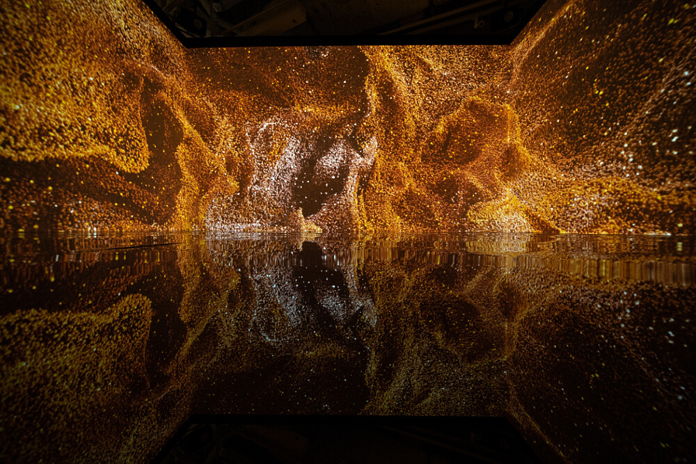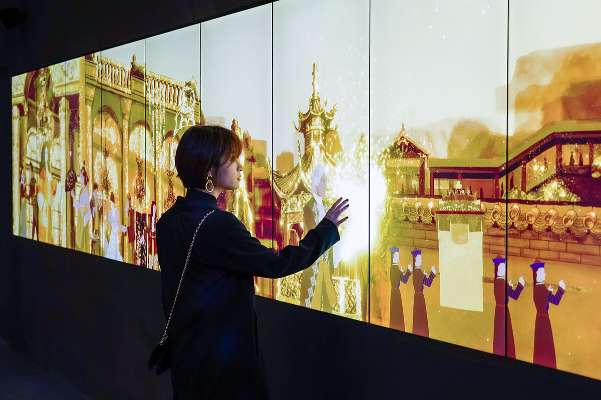 熱門的沉浸式體驗為主,將出現在「黑漆描金」器物上的紋理、景色轉繪並放大投影在展間中,提供更細緻的感官體驗。