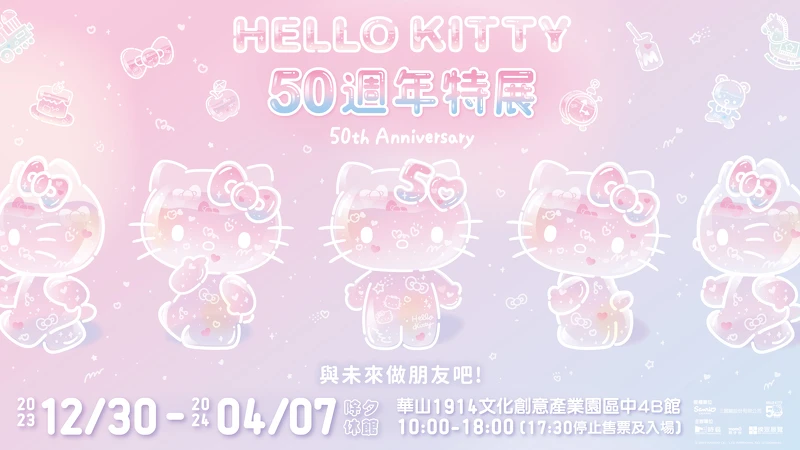 風靡全球的可愛經典三麗鷗大明星 HELLO KITTY 誕生50週年!「HELLO KITTY 50週年特展:與未來做朋友吧」12月將在華山文創園區4B館正式開幕! 展覽規劃七大互動展區,透過多媒體互動的創意形式,帶領大家用各種趣味玩法深度了解連粉絲都不一定知道的 HELLO KITTY 小秘密,展覽中更打破場地限制,以「貫穿」展館一、二樓空間的超巨型 HELLO KITTY 概念裝置作為本次最大亮點!