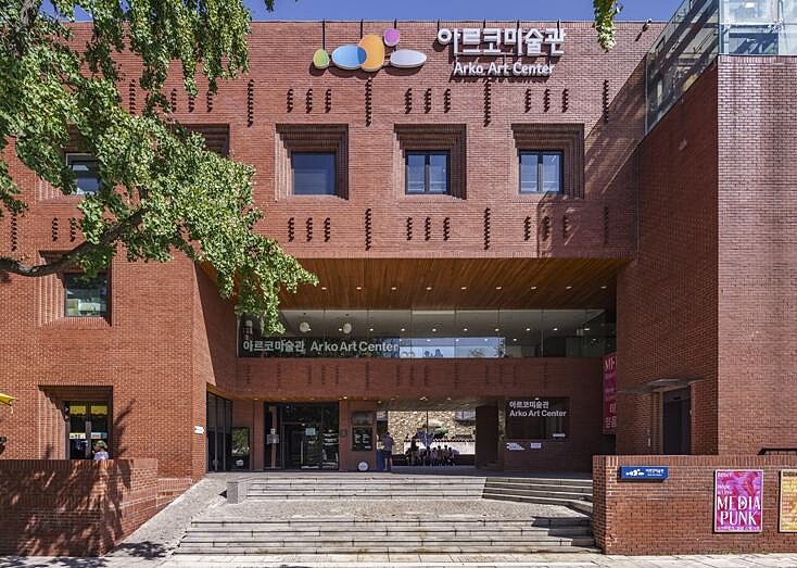 即將在2024迎來50週年的ARKO美術館,位於大學路馬羅尼埃公園內。由韓國現代建築家金壽根所設計而成,建築外牆由紅磚瓦展現「大學路」的意向。同時也因美術館座落於充滿年輕活力「大學路」的中心,成為許多小型劇場與藝廊聚集的藝術街,更匯聚許多年輕大學生於此。ARKO美術館在藝術推廣上也做了不少貢獻,經常舉辦免費展覽,讓藝術更親近大眾。另外也致力提倡精簡展覽相關設計或設置,為環保盡一份心力。