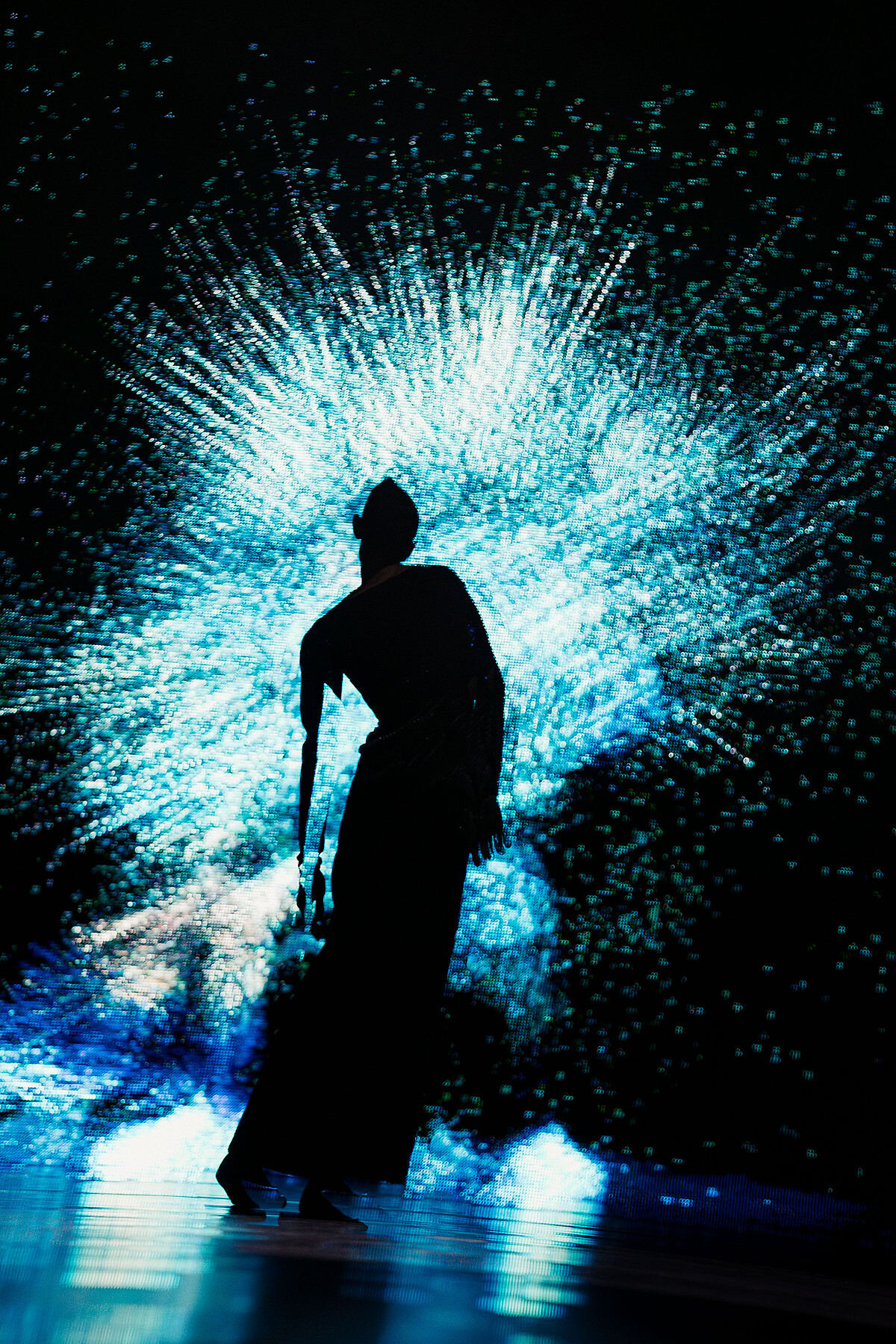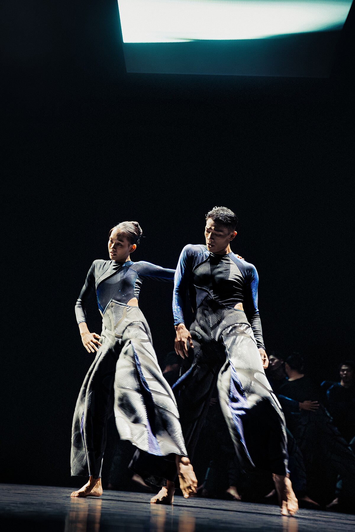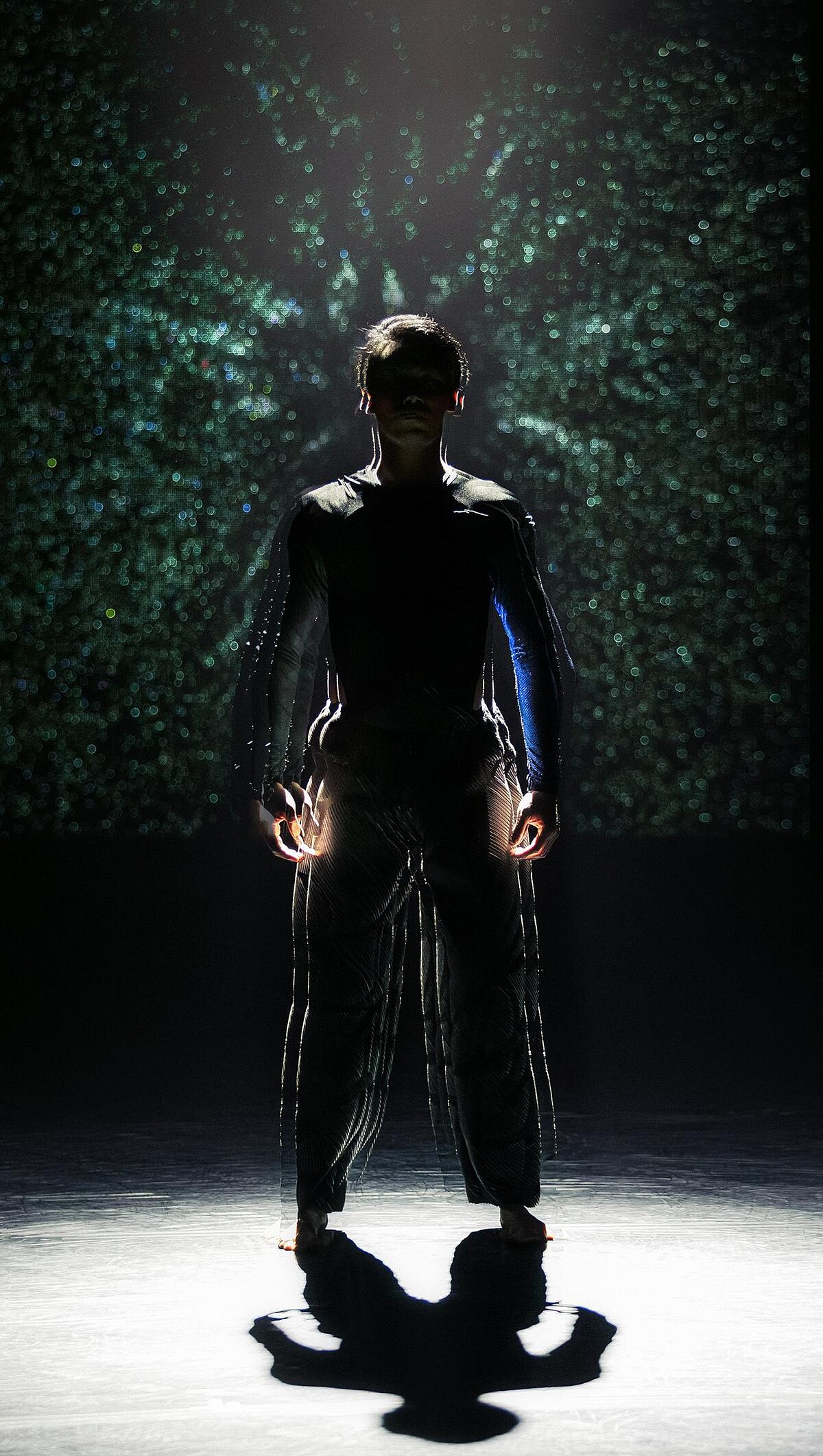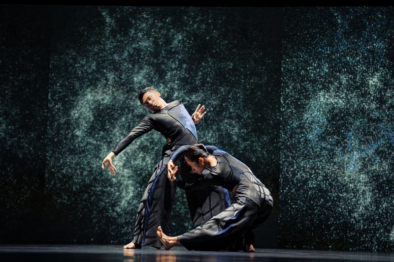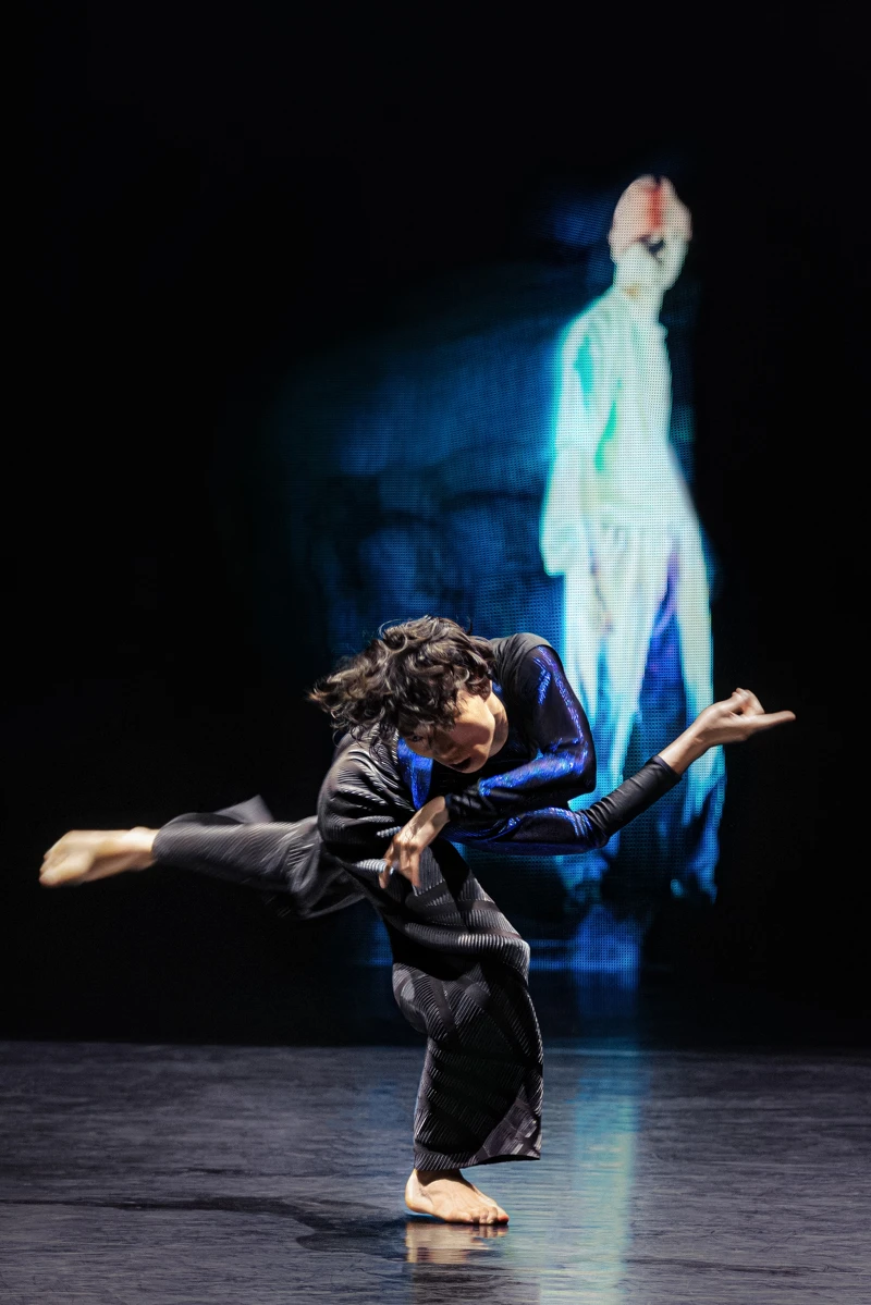 而在臺北國家戲劇院演出前,一直調整直到演前最後一刻的鄭宗龍更分享,「過程很驚險,AI程式餵養不同元素,它會算出一些想不到的東西。肢體動作變成影像,會有流體的變化,機器閱讀到身體在空間上的改變,LED上會有未知的呈現,大家也或許會發現我沒發現的事。」