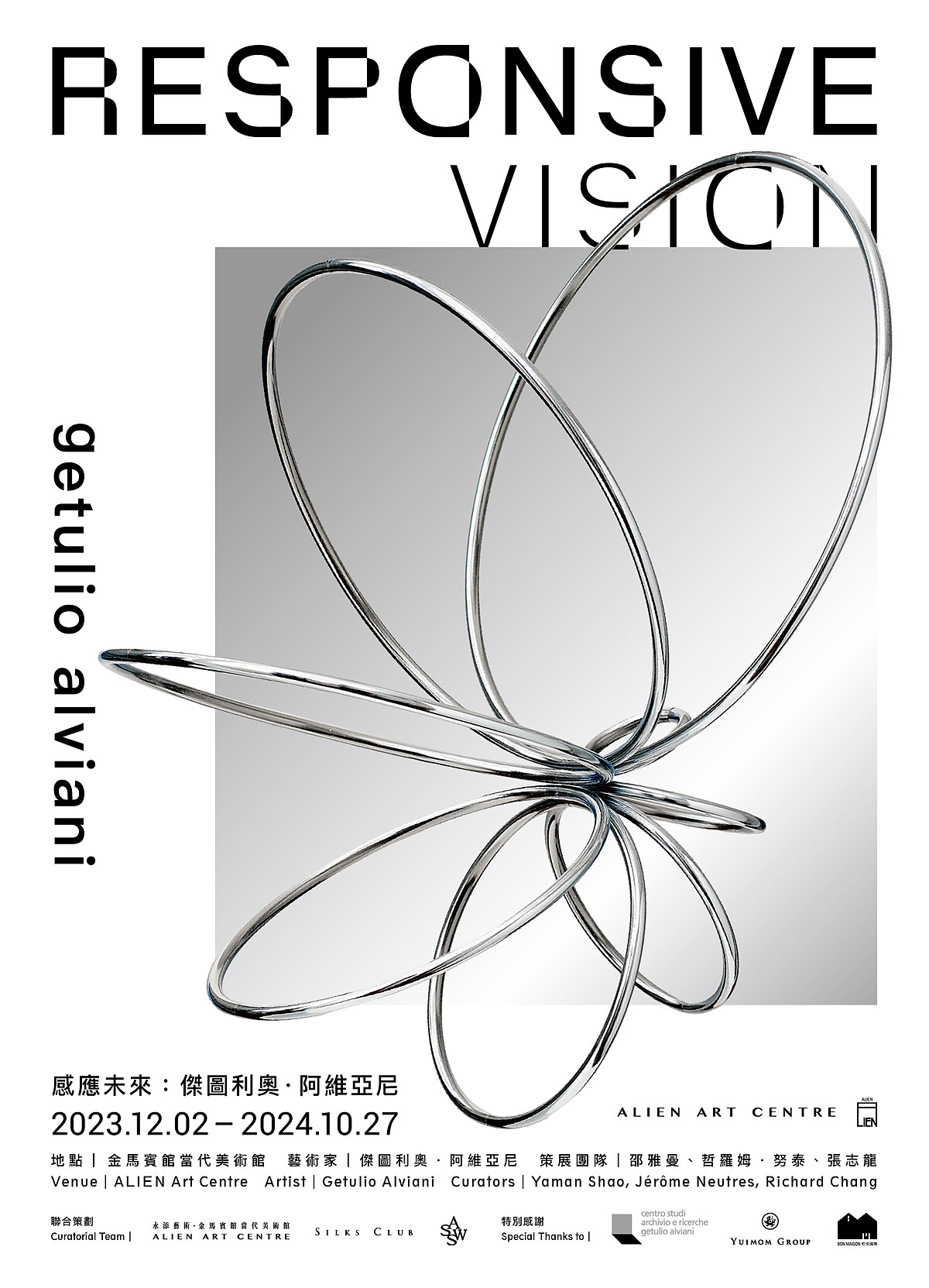 本展是繼2018年MoMA紐約現代藝術博物館展出後,當代藝術大師傑圖利奧.阿維亞尼(Getulio Alviani)首度在亞洲完整的回顧展。展覽由三位策展人共同推動,包含——今年甫獲法國政府授頒藝術與文學軍官勳章的國際策展人 Jerome Neutres、金馬賓館當代美術館館長邵雅曼(Yaman Shao)、以及國際人文探索家暨藝術史研究張志龍(Richard Chang)。