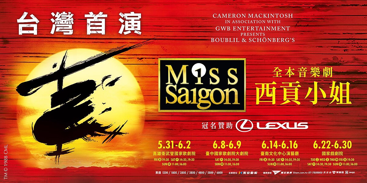 與悲慘世界、貓、歌劇魅影齊名世界上最偉大的音樂劇——百老匯全本音樂劇《西貢小姐》終於將首次登台進行巡演!從2023年一月起,《西貢小姐》這部全球矚目的全新製作版本已在澳洲掀起風潮,各地巡演場場爆滿,榮獲70項以上的戲劇及藝術大獎!而今年5月當今全球唯一的限定版本將帶著熱情四射的音樂首度為台灣揭開序幕~