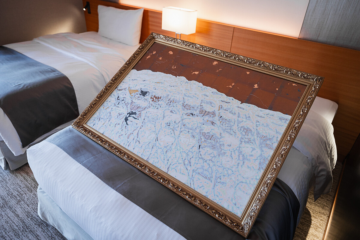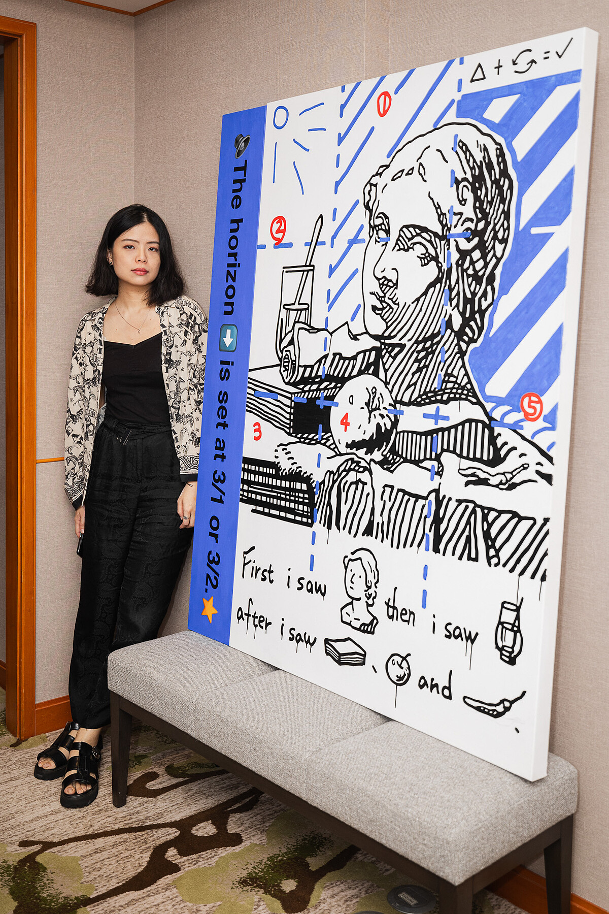 來自日本的大阪藝廊 TEZUKAYAMA GALLERY 的杉山卓朗,透過反覆重構線條和平面的手法,達到大幅減少人為介入的方式創作《無題》,強調無關手繪技術、超越靈性的繪畫表達。
