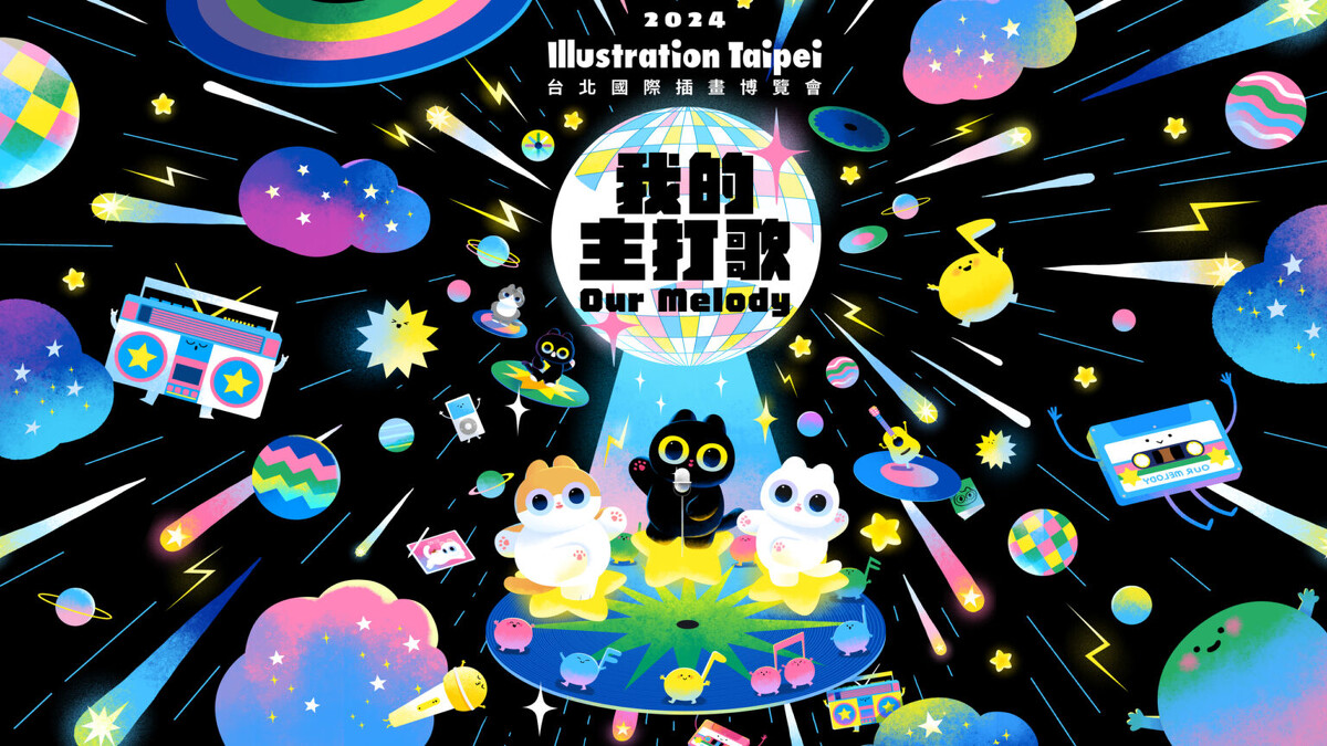 畫作和音樂一樣,能同時容納百變的風格、卻也有各自的擁護者!每個人心裡都有一首歌或一段旋律蘊含著特殊意義!2024年,第二屆 Illustration Taipei 台北國際插畫博覽會以「我的主打歌 Our Melody」為主題,邀請創作者們,挖出心裡那首歌,讓靈感乘著旋律的聲線,化為一個個充滿故事的作品,讓每個展間成為一個小舞台!
