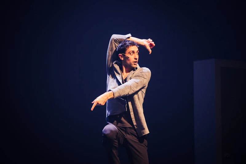 《一個說謊,一個說愛》是一則當代社會的隱喻,講述人為了博取認同、關注與關愛而營造假象,在無形的監視與評價之中迫切地追求被愛,試圖詰問對「自我呈現」的終極追求,在認同與被認同中徬徨,如何讓個體逐漸崩解。本作由亞倫與英國劇作家安卓.魏爾(Andrew Wale)共同編寫,七位首演舞者亦於創作中交付自己的故事,其中更有凃力元與吳承恩兩名來自台灣的舞者,吳承恩分享:「亞倫是一個很敏銳細膩的人,他可以察覺到舞者細微的情緒波動,精準抓到隱藏在故事背後的潛意識陰影,進而轉化成舞作內容。」