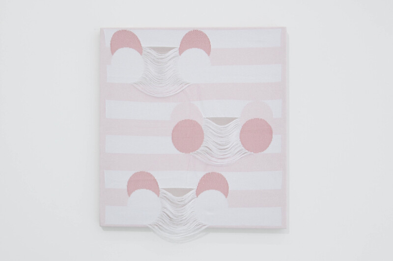 當郁媚回到⼯作室時,她也將城市中來回穿梭、重複經過的經驗化作為針線的流動,在材料與⾃⾝⽣命經驗的交織裡,將周遭環境化作抽象符號與精神。在此次展出的作品中,可以感受藝術家透過針線的流動、材質的變化、維度的更迭及⾊塊形態的差異構築出充滿動態的詩意世界。