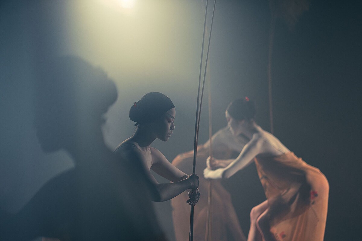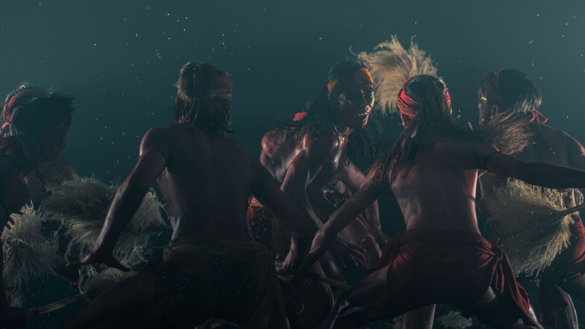 信仰的象徵——媽祖,引領幽魂渡海,緩緩進入儀式;淨身代表著儀式的初始;纏綿卻含蓄內斂的情感,在相互牽引的二人發酵流露;潛藏的仇恨倏地爆發,如野獸般掠奪攻擊;柔軟的水撫慰了靈魂,悲情化為包容,生命在大地之河裡傳承與輪迴;孤燈燃亮,冥紙散飛,儀式在心經的迴盪聲裡終了。