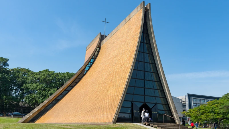 東海大學路思義教堂,為貝聿銘與台灣設計師陳其寬之作品,於1963年11月2日落成,是台灣最具代表性的現代主義建築。當年,由美國《時代》與《生活》雜誌創辦人亨利・路思義(Mr. Henry R. Luce)為了紀念父親與宣揚福音所捐款興建。路思義教堂位處校園中心,建築大塊曲面朝向天空,上窄下寬的設計提供穩定視覺感,窗戶透進的光線,則為前來民眾帶來一種神聖感受。如今歷史超過半世紀的路思義教堂,已成為東方文化與西方設計於台灣相遇的美好證明。