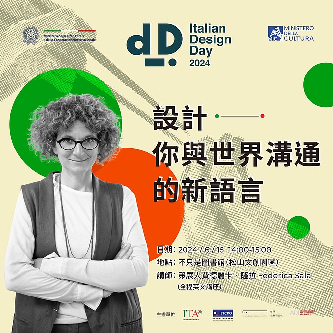 而本展將邀請策展人費德麗卡﹒薩拉(Federica Sala)以「設計──你與世界溝通的新語言」為名進行專題講座,也邀請設計師許向罕、林曉瑛等人分享對義大利設計的觀察。歡迎所有對設計有興趣的民眾參與這場經典設計的盛會。
