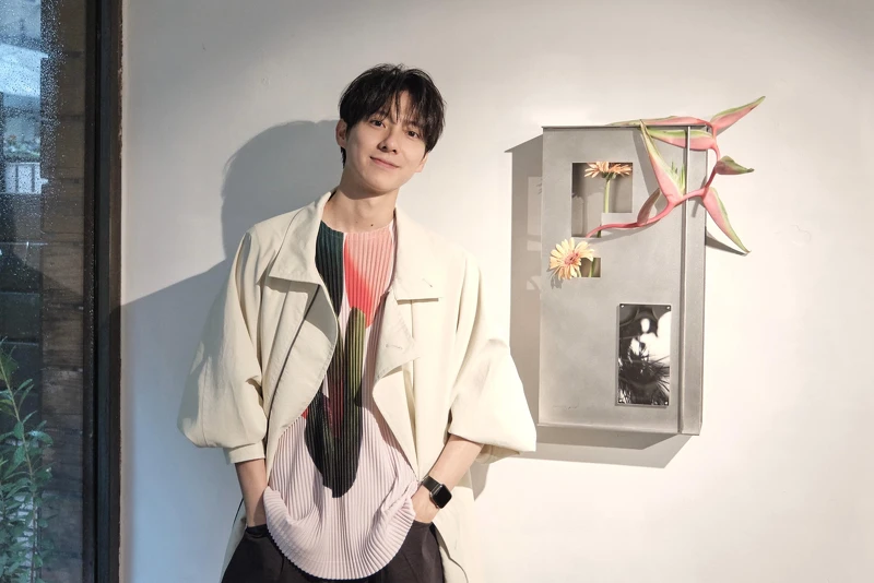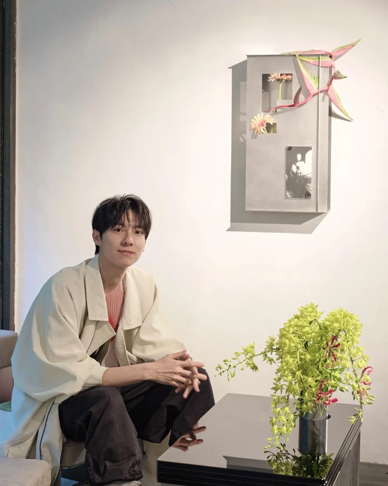 這次因為認識了很欣賞的花藝師『一器一花』,加上以前是學雕塑,對金屬的材質性一直有興趣,想嘗試金屬和花的結合,所以有了這個展的誕生!」他也分享自己跟花的故事:「對於花的認識可能是因為家人過世後,每次去看家人時會帶著一束或一小朵花去看他們,每次在挑選的時候我都會特別去選自己喜歡的顏色和配色。」