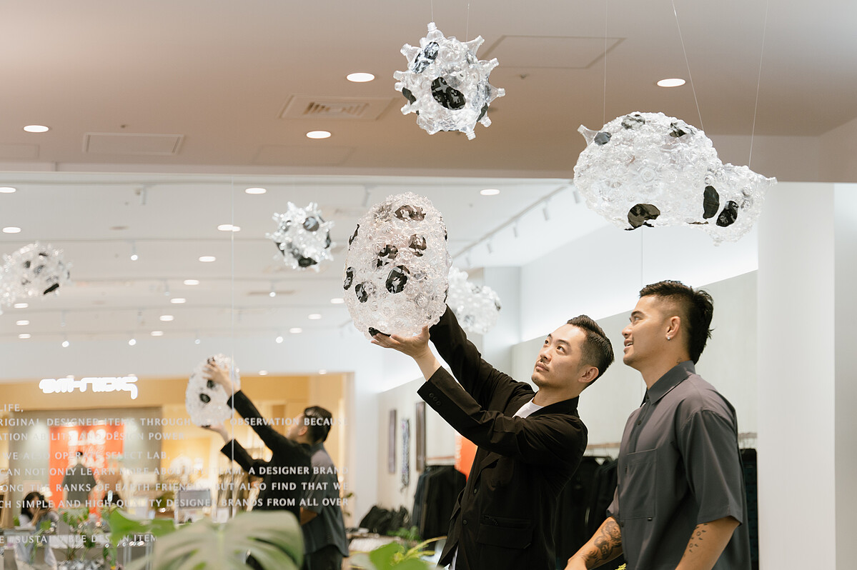 Leeroy New也認為,永續需要真正的行動,並將政府政策帶入對話討論,「這是當今至關重要的議題,世界各國都在討論。」Leeroy New表示,他也會透過藝術討論永續議題,像這次的作品是以寶特瓶製成,靈感源自於疫情的這幾年,他在菲律賓看到有人使用寶特瓶製成的面具防疫。此外,在Leeroy New的創作素材上,也使用了很多竹子素材,「我試著透過創作形塑屬於菲律賓的藝術語言,我也經常思考,如何使用既有的素材,創造出新面貌,這是我一直在實踐的事。」FLY表示,藝術或設計,都是一種載體,「我們吸收了很多文化和美學,轉化成不同的創作內容,像是廢棄寶特瓶可以製作成裝置藝術,也可以轉化成大家想穿的服裝。」FLY也期待,他們的想法和做法可以影響更多人,進而在生活中發生效應。