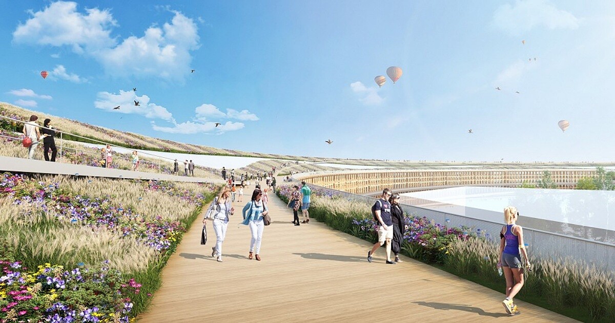 2025大阪世博會活用四面環海位置的優點,闢出偌大能感受到大海和天空的會場。由建築師藤本壯介擔任主設計的圓環廊道「大屋根」,高12公尺(外側達20公尺)、直徑寬615公尺,總面積達6萬平方公尺,由杉木和柏木建造,不僅是世界最大木造建築,更是要讓每位走入博覽會的人們,好好感受一下日式建築的絕技工法。