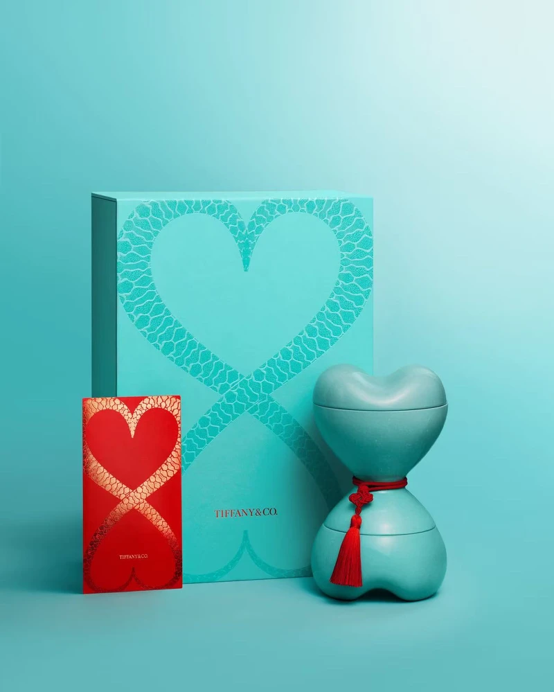 此次新春之作包含一款限定版陶瓷首飾盒,由歷史悠久的「德化白瓷」製成,選用了品牌標誌性 Tiffany & Co. 藍釉面,點綴代表蛇夫座星辰的白色斑點,並搭配象徵著好運與團圓的中國結。首飾盒本身既是一件藝術品,也可拆分成實用的隔層,收納心愛的飾品和物件。另有一款附托盤的立式陶瓷支架,可用於收藏與展示名貴珠寶。