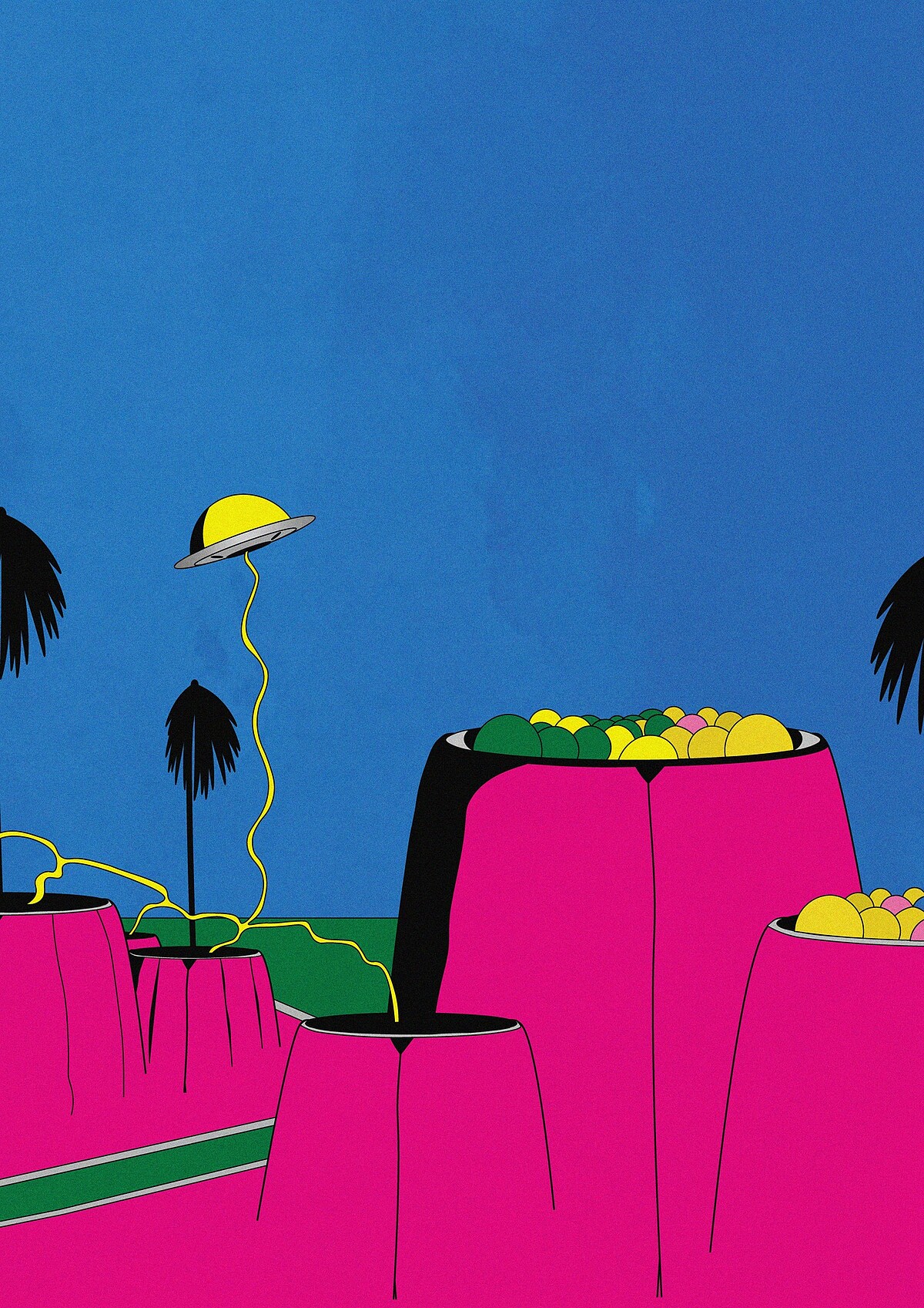 雖然 Cream Ecoes 目前以數位創作為主,但他對於更自由的媒材表達充滿興趣。未來,他希望嘗試顏料創作,探索如何在畫布、紙板,甚至牆面上進行更開放的表現。他認為,與數位媒材相比,顏料能提供更直接、無拘束的創作過程,讓他能夠更加專注於色彩與形式本身的表現。