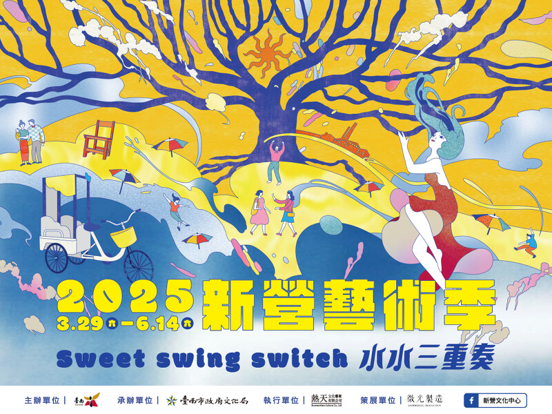 2025 新營藝術季將於 3 月 29 日至 3 月 30 日的周末舉辦開幕活動,好吃好玩的水水市集、故事三輪車「小水滴的聚集」、走讀「與水同行」等等精彩演出,多組表演者輪番上陣,如水般流動不間斷。