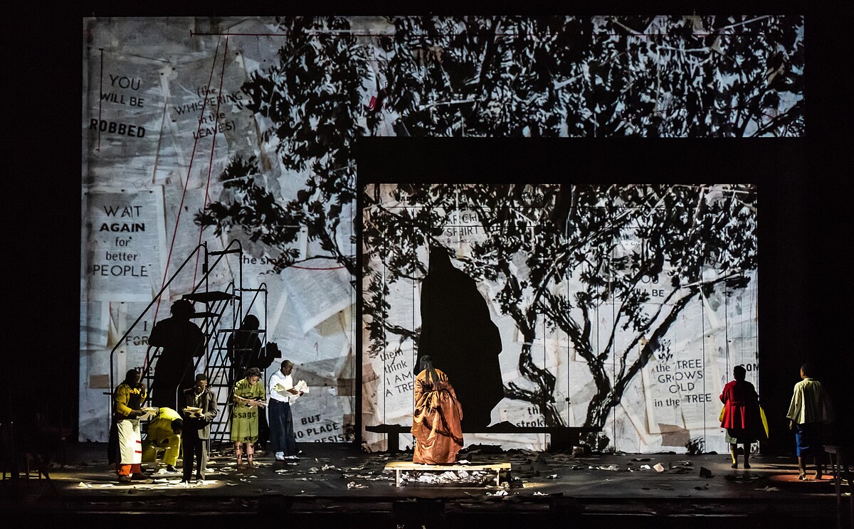 合唱作曲家恩蘭拉.馬哈蘭古(Nhlanhla Mahlangu):《女先知》採取室內歌劇的方式呈現,其中有音樂、舞蹈,還有很多繪畫,因為畢竟威廉.肯特里奇是是視覺藝術家,他的作品都呈現在現場,以繪畫乃至動畫的方式呈現。並且把希臘的傳說轉移到了南非,把它南非化,所以會運用很多南非的元素去呈現所在的南非的觀點,去創造出南非的女先知。