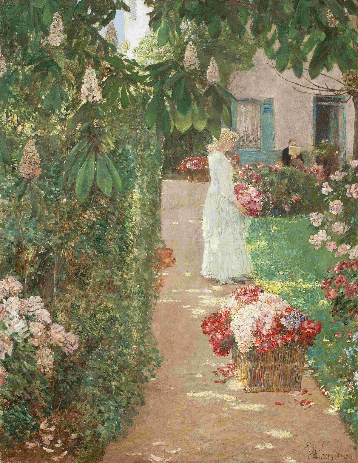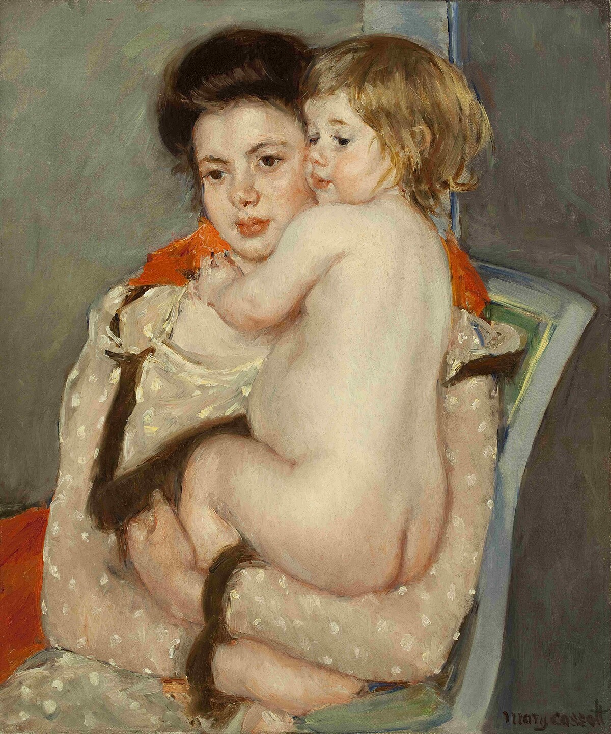有「美國莫內」之稱的哈薩姆,他的《在法式庭園中採花》(圖四),色彩繽紛、清新脫俗,完美融合印象派的光影與美國本土精神;而美國印象派最重要的女畫家之一——卡薩特,是當時極少數能打入法國印象派圈子的女性藝術家,有別於其他印象派畫家鍾情於塞納河派風光,她選擇描繪母親與孩子之間的親密時刻,經典的《母與子》(圖五)精準捕捉親情的真摯與溫暖。