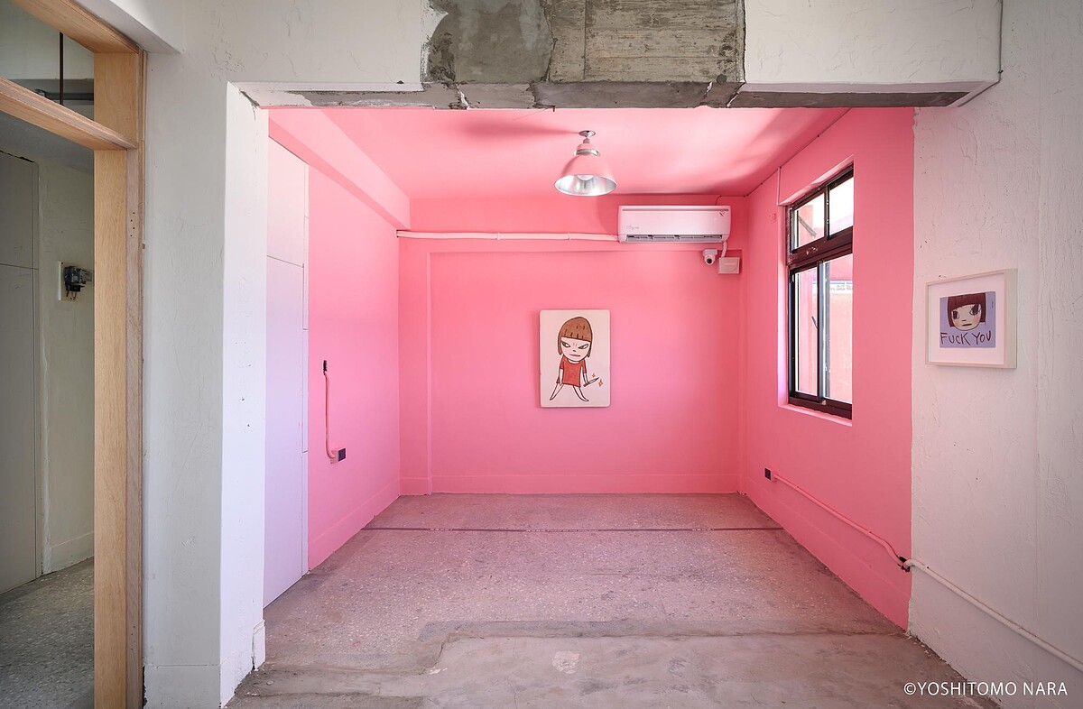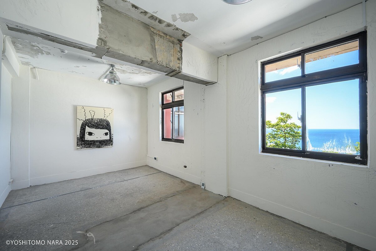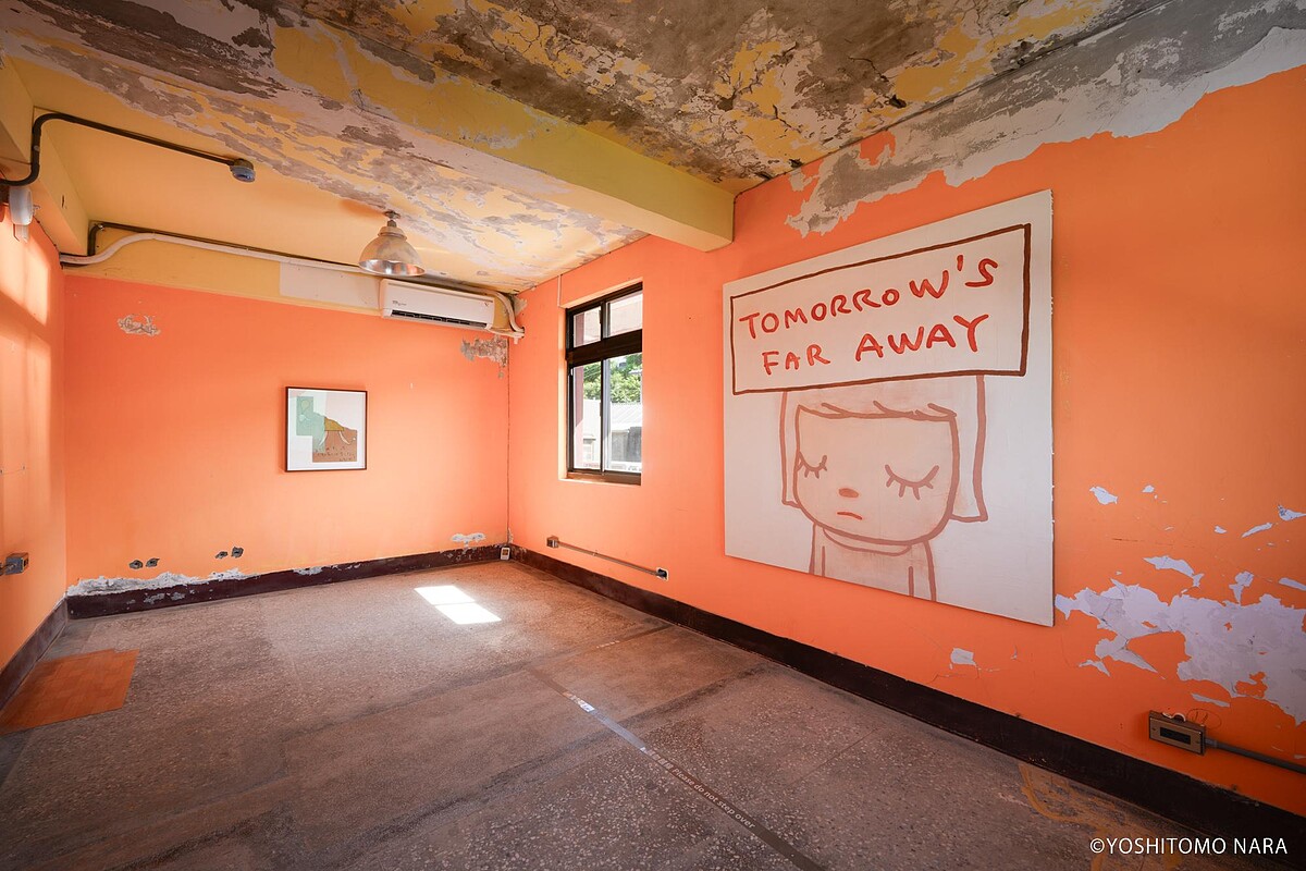 當初在勘查場地時,奈良美智來到這棟正重新整修到一半的空間,他提出了一個「任性」的請求,希望能暫停部分的工程,讓他能在這種整修狀態未完成的建築裡展出作品,在既有的空間,保存過去的記憶,同時賦予新的價值。他說:「第四站來到了金瓜石,我真的就是想要在這樣的場域,來展出我的作品。」