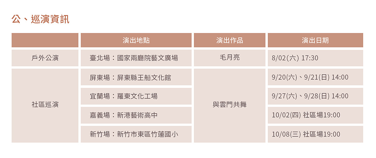 2022 年,雙方共同創立「國泰雲門隨行吧」藝術品牌,進一步實踐「讓藝術融入生活」的信念。這項計畫,不僅僅是一場移動的演出,更像一趟深入台灣各地的文化旅行。