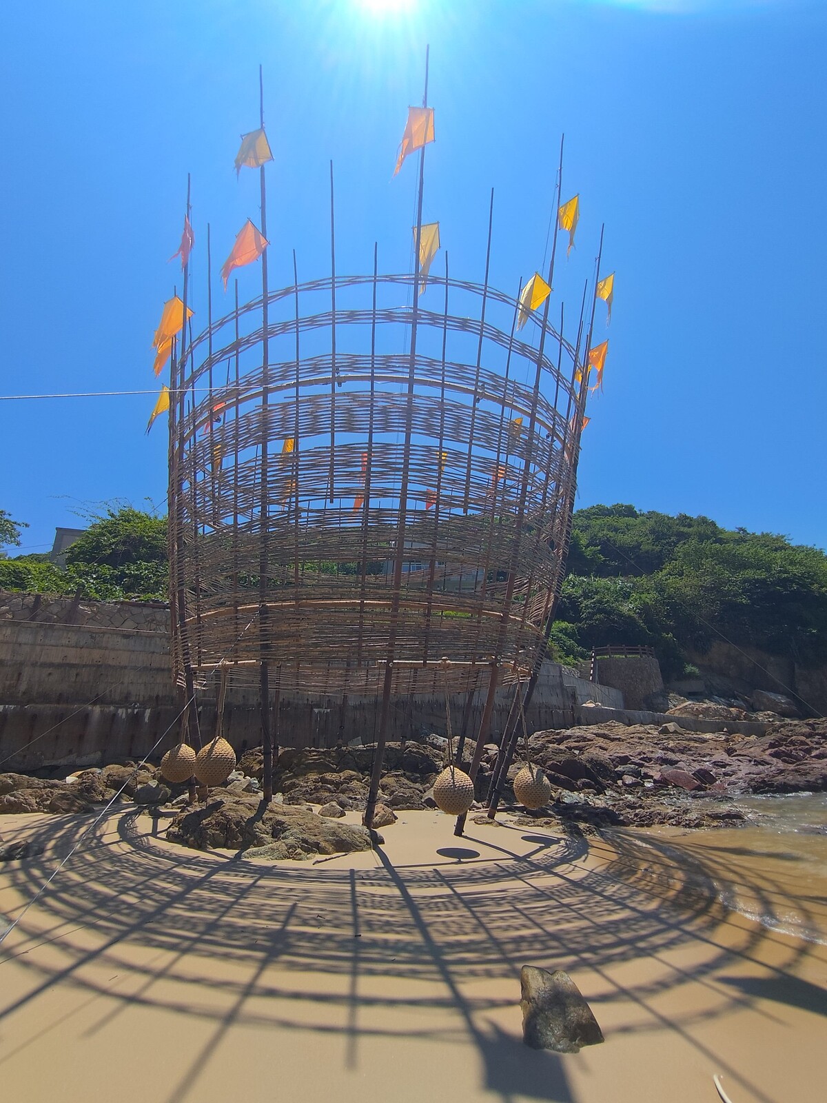 策展人那高.卜沌(Nakaw Putun)以「拍楸:一個網目養一個人」為題,展現討海人的生計型態、工藝技藝與生態知識。延續常設經典作品伊祐.噶照(Iyo Kacaw)《海就是我的陸》的海洋精神,另外也邀請竹編藝術家甘銘源在鐵板澳口帶來竹編大型裝置《拍楸-簍光・竹影》,馬來西亞藝術家朱威龍亦在山隴澳口以風動裝置《漁夢》重構馬祖漁村的意象,呈現過往漁人順應海流、與海共生的記憶。康雅筑《解編那回返之徑》在牛角澳口呈現,聚焦女性在漁村生產中不可或缺的勞動與編織智慧,也撐持起網目之間的關係網絡。
