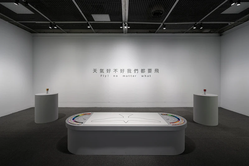 《天氣好不好我們都要飛》始於15年前,豪華朗機工與台新銀行文化藝術基金會共同企劃,以空白鳥圖紙邀請全臺37,200位孩童描繪心中飛翔的夢想,2025年,藝術家再次打開圖紙,重組天氣鳥,穿越教室飛進眾人的天空,這件大型集合創作再次展翅,象徵自由與勇氣不因時代而停歇,無論天氣如何,都要勇往直前飛,現場也邀請觀眾加入「天氣團」,一起為小鳥繪製彩色翅膀。