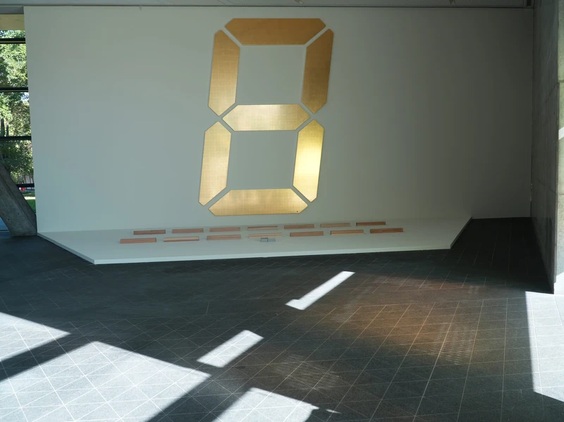出自宮島達男系列作品,此次展出為亞美館所做的現地創作。邀請 126 位亞洲大學學生、10 位亞美館館員、2 位亞美館清潔人員,於窗面貼上從輪盤隨機轉出的數字。隨著陽光移動,光影與數字交織成為日晷般的時間痕跡。
