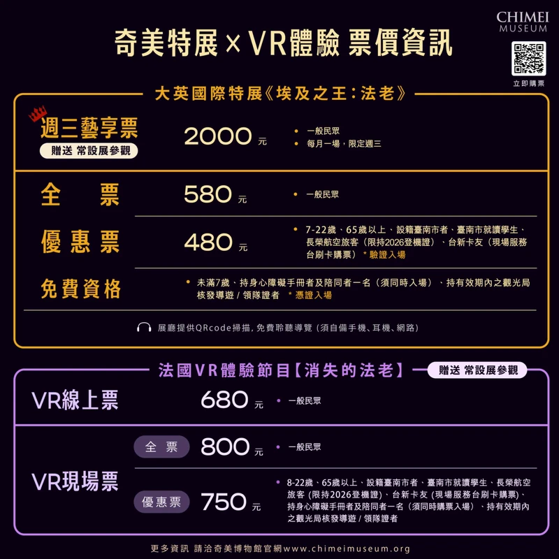 奇美博物館今年啟動全新展廳「VR體驗廳」,與VIVE Arts合作,將法國VR探險體驗先驅Excurio的人氣作品《消失的法老》帶來臺灣,藉此呼應來自大英博物館的超級大展《埃及之王:法老》,打造虛實整合的「一站式古埃及體驗」,戴上裝置就能享受穿越4500年的神祕冒險旅程。