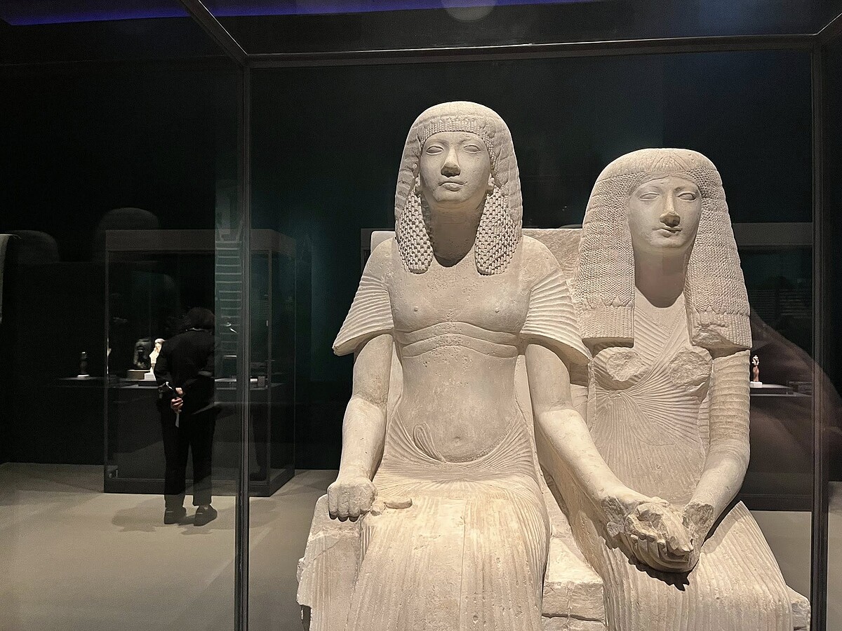 法老霍朗赫布登基前與妻子的夫妻像。與大多數國王不同的是,霍朗赫布登基並非王室出身,他在成為國王前是一位功勳卓越的將軍。大英博物館在1839年取得這件作品時,不知道它在哪裡出土,也沒有相關資料,一開始並不清楚這件文物的實際身分。直到後來考古的發現,對這個文物有新的認識。