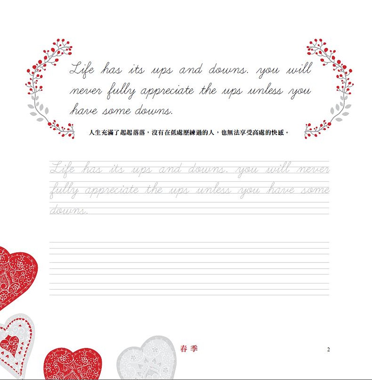每頁所精選的格言佳句,皆是依當季的脈動來選擇,無論是春季的喜悅、夏季的激情、或是在秋季的省思、冬季的感恩與期待,都將帶給你心靈不同層次的啟發。