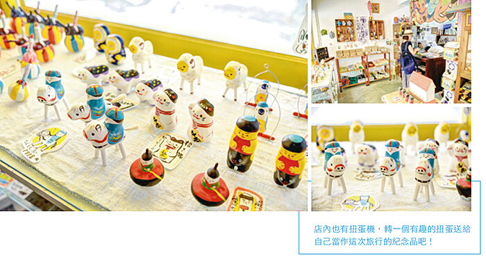 如此充滿童趣的琉球玩具,是一位出生於沖繩的藝術家豐永盛開設的店鋪,其作品兼具沖繩傳統文化特性與童趣手繪造型,給人一種回到童年的寧靜快樂感。琉球玩偶是沖繩自古流傳至今的玩具,早期是父母為了祈求孩子平安健康而會買給孩子的玩具之一。