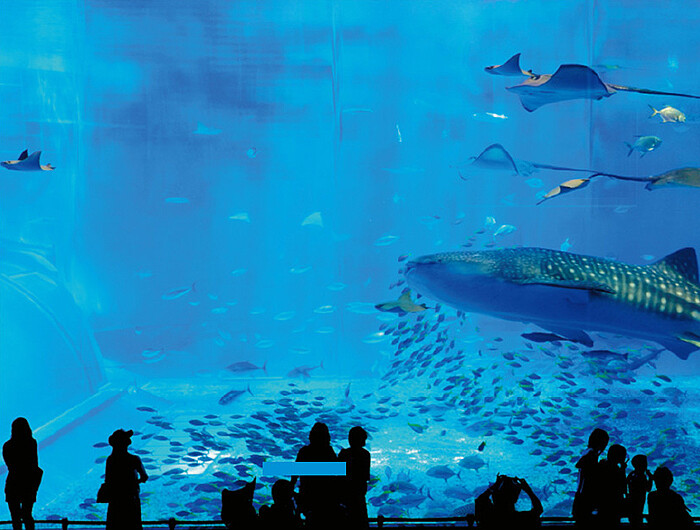 對於第一次來到沖繩的朋友而言,北部的美麗海水族館絕對是必打卡的熱門景點,來到這裡,除了可以親眼看見登上金氏世界紀錄中世界最大水槽,還可以親眼欣賞鯨鯊以及種類繁多的魚類在眼前盡情悠游,因為水槽牆面非常高大,靠近看時,還真有種置身於海底的錯覺,是造訪沖繩絕對不能錯過的景點之一。