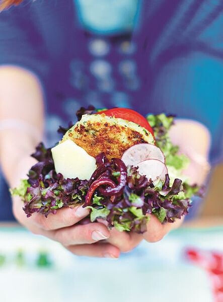 漢堡風潮擋都擋不住地掃遍全世界。紐約、倫敦、巴黎、斯德哥爾摩:我拜訪的每個城市都有無數的漢堡酒吧賣著夾在布里歐漢堡麵包裡的肉排之老饕級漢堡。別誤會,我超愛漢堡!但是看了那麼多的肉排,我發現自己想來點比較清淡爽口的味道。雙手拿起這個花椰菜起士堡,咬下一大口,讓漢堡裡的汁液流到手上……就像真的漢堡一樣!