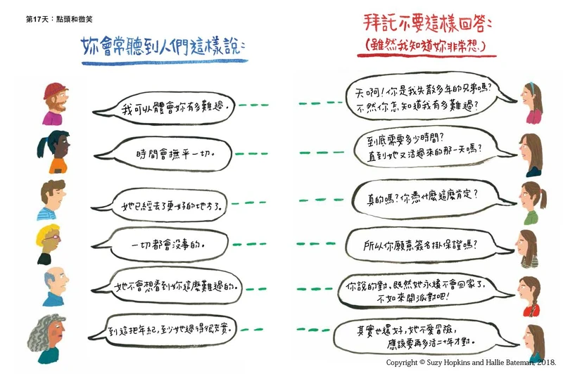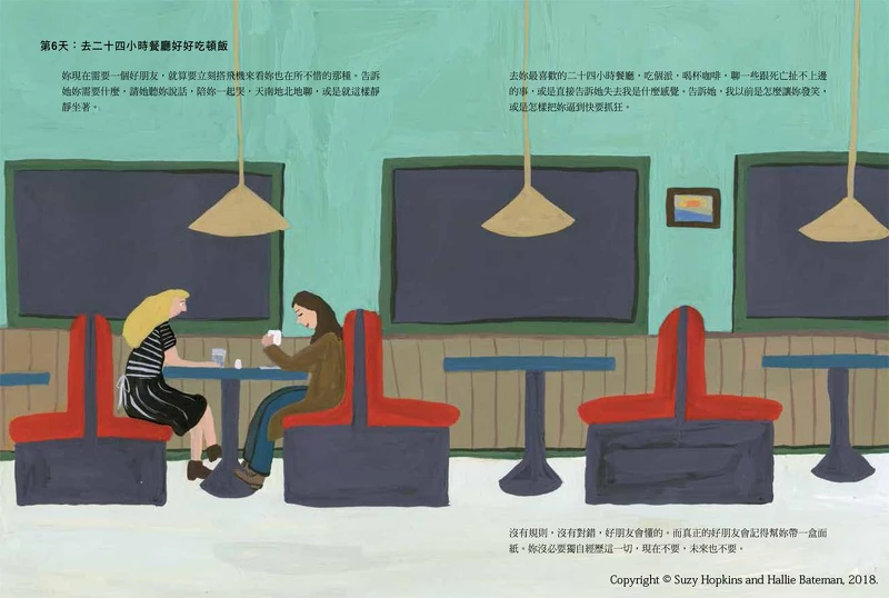 沒有規則,沒有對錯,好朋友會懂的。而真正的好朋友會記得幫妳帶一盒面紙。妳沒必要獨自經歷這一切,現在不要,未來也不要。