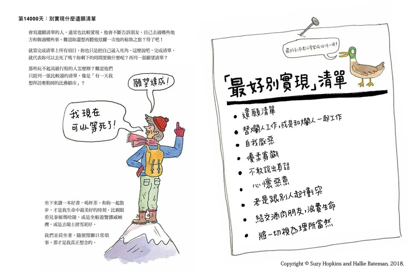 就算完成清單上所有項目,妳也只是把自己逼入死角。這麼說吧,完成清單,就代表妳可以去死了嗎?妳剩下的時間要做什麼呢?再列一張願望清單?