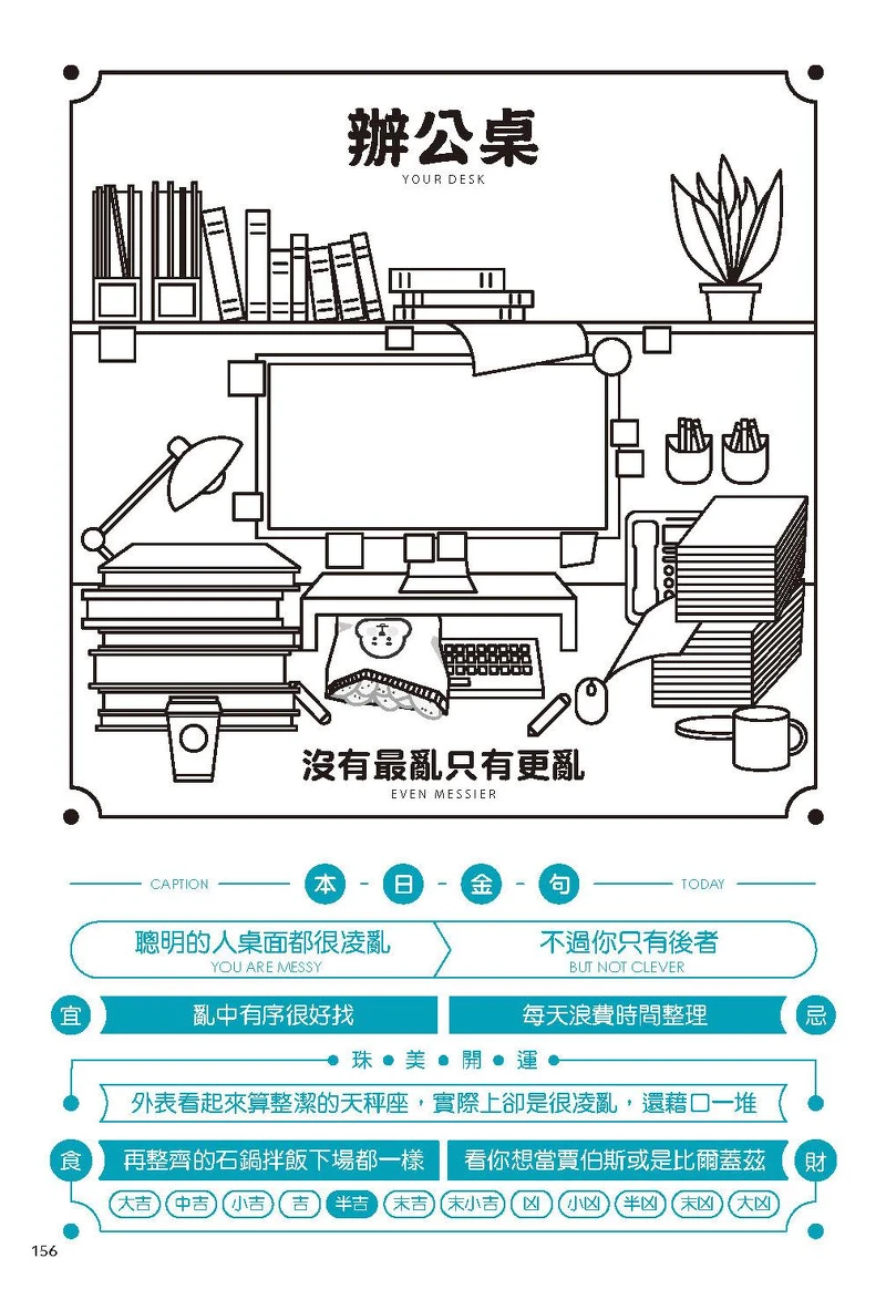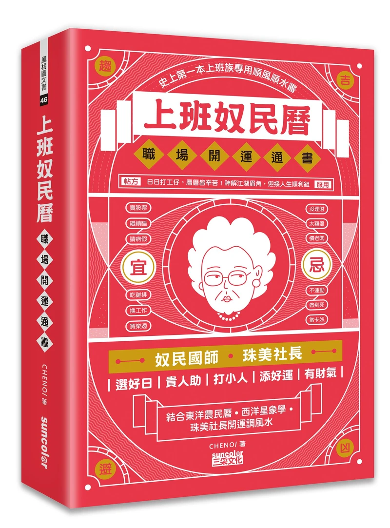 每天上班都提心吊膽?一到辦公桌上看到了貼心早餐,又或是老闆突如其來的問候,這到底是在暗示著甚麼?坐擁IG近2.6萬粉絲的香港工作、台灣設計師CHENO,推出史上第一本「上班族專用」的順風水圖文書《上班奴民曆:職場開運通書》,就專門指點迷津、透露當日運勢!還貼心奉上本日金句、宜忌行為、紓壓飲食,身為社畜的妳,看了絕對超有共鳴,快往下看看是否有準?
