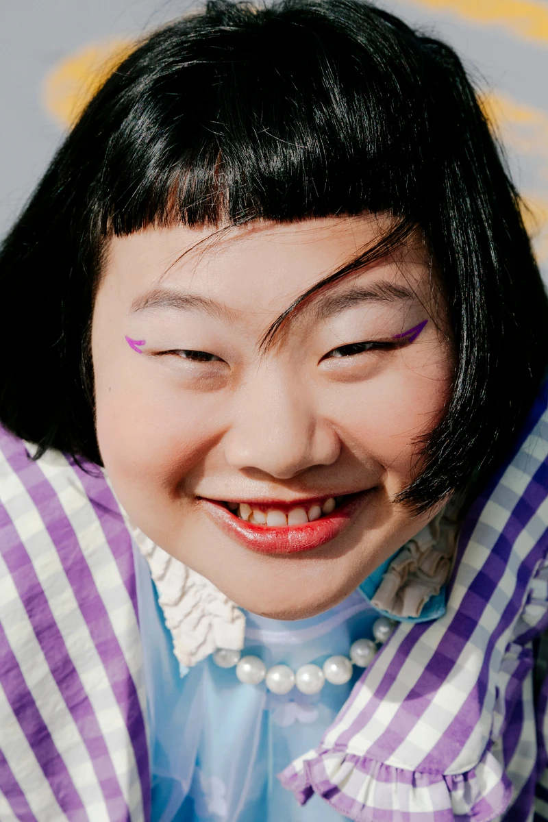 但若只單以台版渡邊直美來理解小蘋果未免太過平面,除了小螢幕的插科打諢,她在舞台劇的聚光燈下能瞬間掉淚,在第一部主演的長片《哭悲》裡用狂烈方式宣洩情緒,也可以用一個眼神傳遞強而有力的感動,又或是模樣憔悴地在鏡頭前笑得你心裡發寒。「胖讓我成為演員,喜感讓我帶給大家歡樂,悲傷讓我學會擁抱世界。」她說。