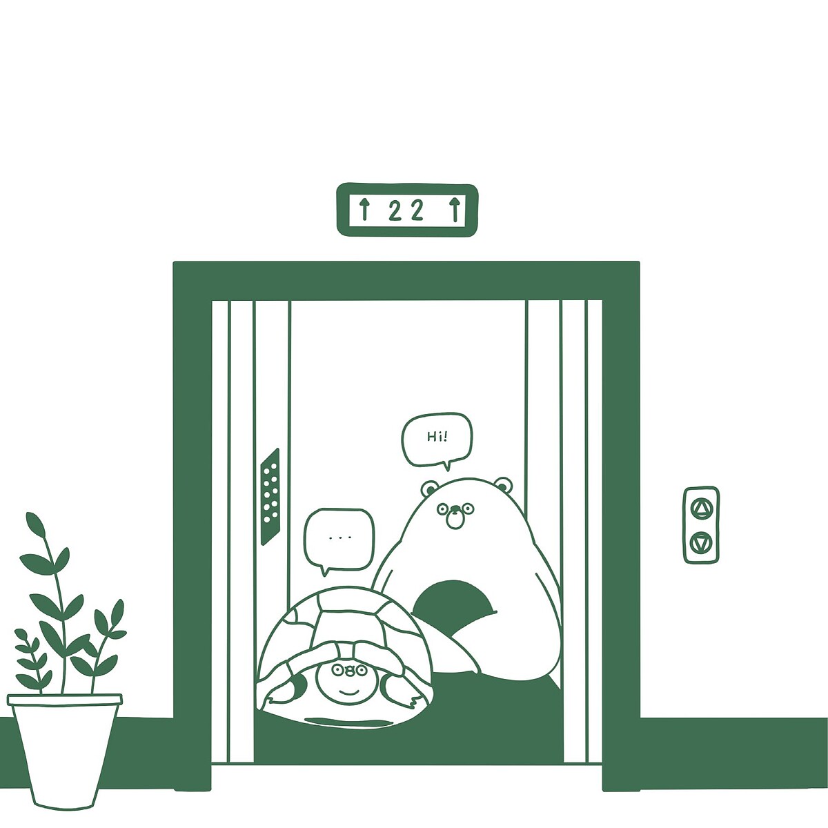 可愛的萌龜害羞內向,反應比其他動物慢,有時候會抓不到開口的時機。勉強自己和陌生人尬聊,往往讓內向者覺得失去社交能量──「這種閒聊沒什麼意義,我可以回家嗎?」