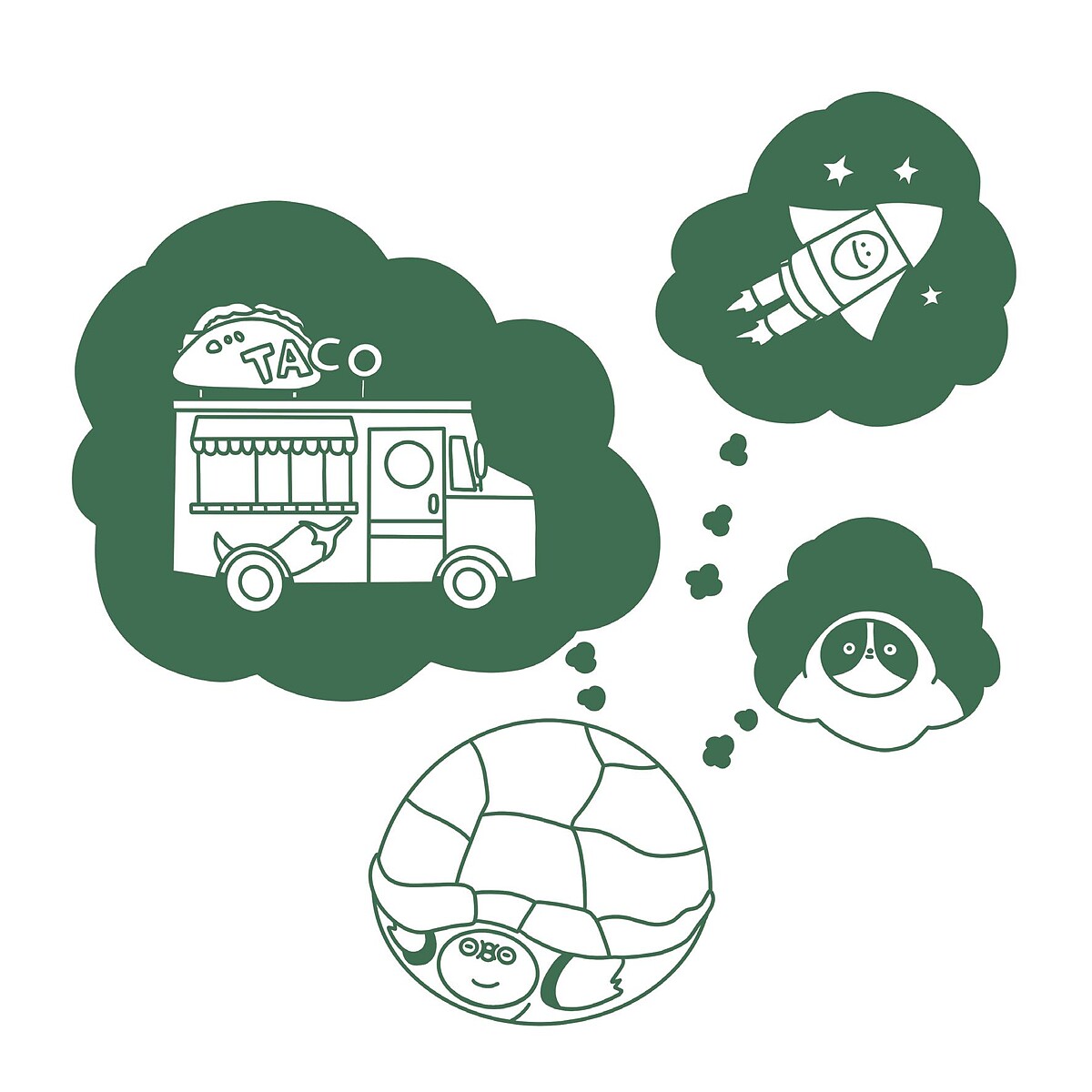 萌龜喜歡躲在自己的龜殼裡,獨處讓牠格外安心自在。這不是反社會人格,而是想適當補充能量,獨處能讓我們重新充電,重拾勇氣與笑容,坦然面對世界的張牙舞爪。