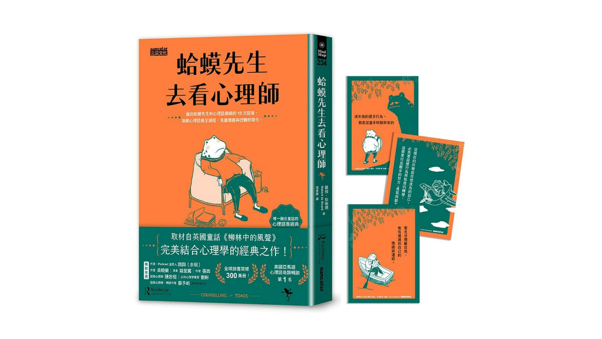 《蛤蟆先生去看心理師》融合了英國童話《柳林中的風聲》,將心理治療過程運用在動物主角們身上。在輕鬆可愛的筆觸中,與蛤蟆先生走趟心靈成長的旅程,探索他的個性並反思童年經歷,一起療癒和展開新旅程。