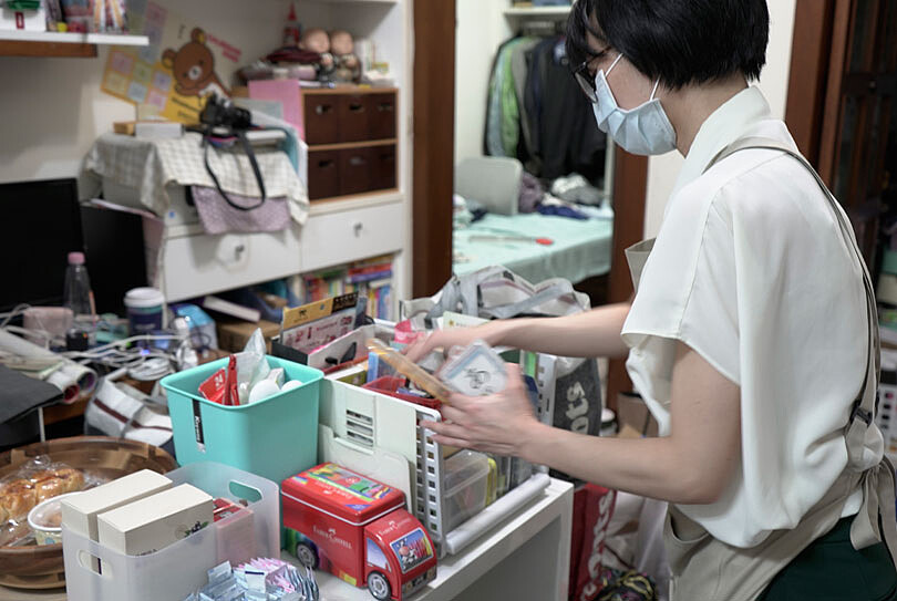 另一個常見的整理需求是收納。有些人是東西多,但收納空間不夠,最後讓大量物品散落在地板上,連走路都有困難。因此整聊師會帶的,不是清潔用品,而是櫃子、籃子或抽屜盒等收納道具,透過跟委託案主討論、觀察空間動線,了解屋內成員使用物品的頻率和習慣,做出更符合需求的配置。
