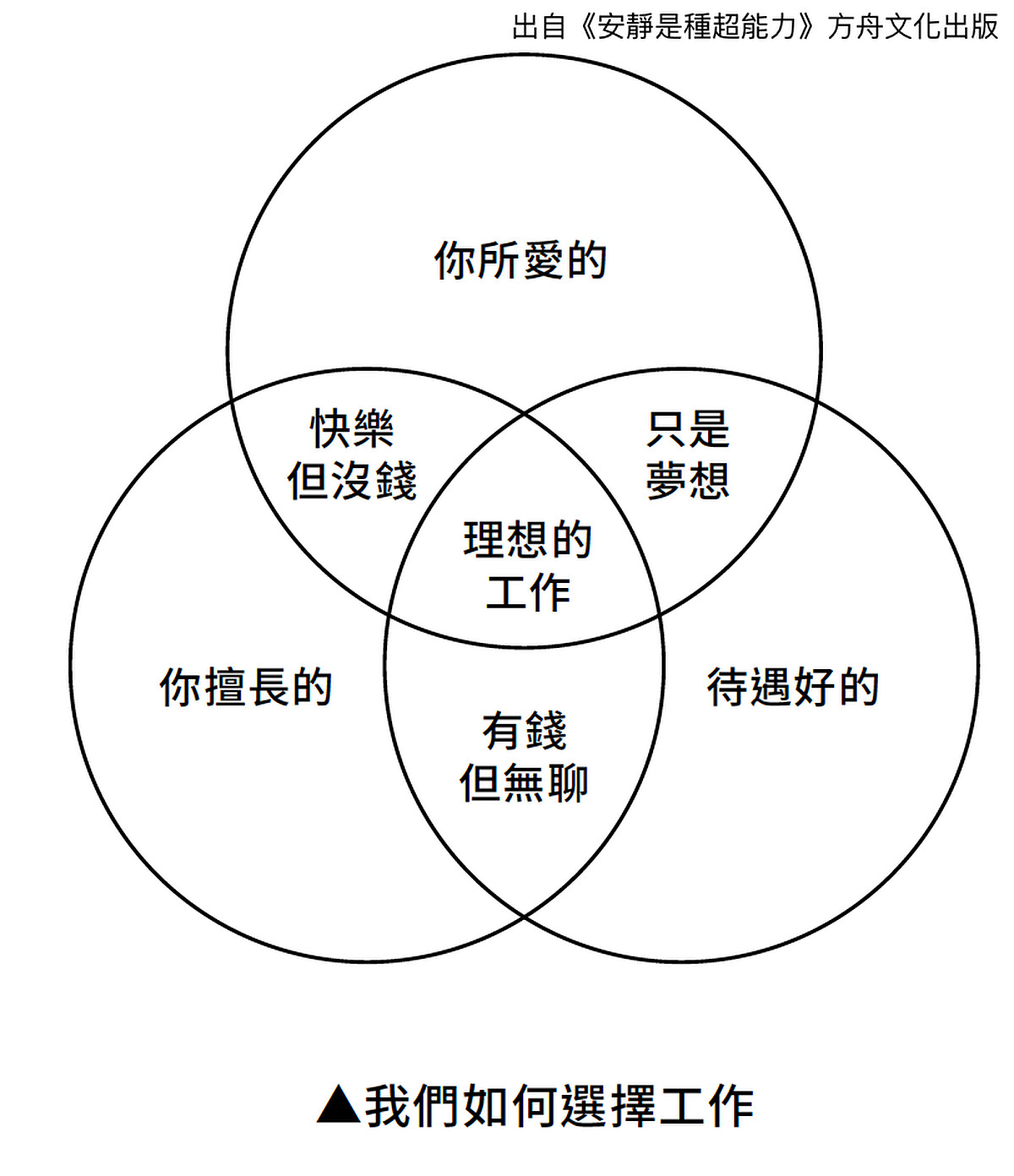 雖然書中也提及內向者適合的工作類型,同時真心希望你會找到合適的工作,但如果還是找不到,也別擔心,大多數的內容焦點是放在「內向者如何在職場上生存?」以及「如何將自己打造成適合工作,至少成為有能力活下來的人?」