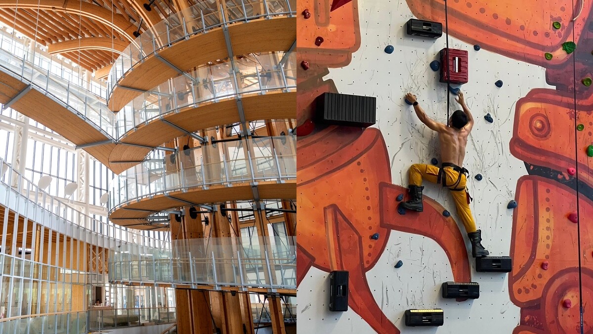 座落半山腰上的「樹德半山夢工廠」,是斥資30億、耗時9年打造的南投最新地標!使用頂級綠建材製作,設計成一座具有絕佳採光的「光盒子」立體建築,裡頭有10層樓高生命樹環樹步道、攀岩牆、互動體驗、文創市集及販售獨家品牌「灣島本舖」優質小物,另外特別規劃三大勇氣體驗設施:樹心跳到底、爬上生命樹、全面啟動夢境牆,膽大的你絕對要挑戰看看。