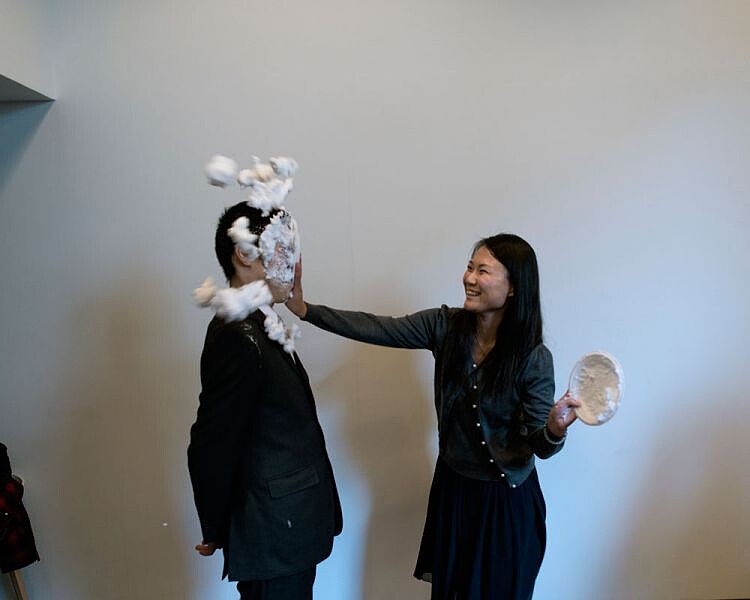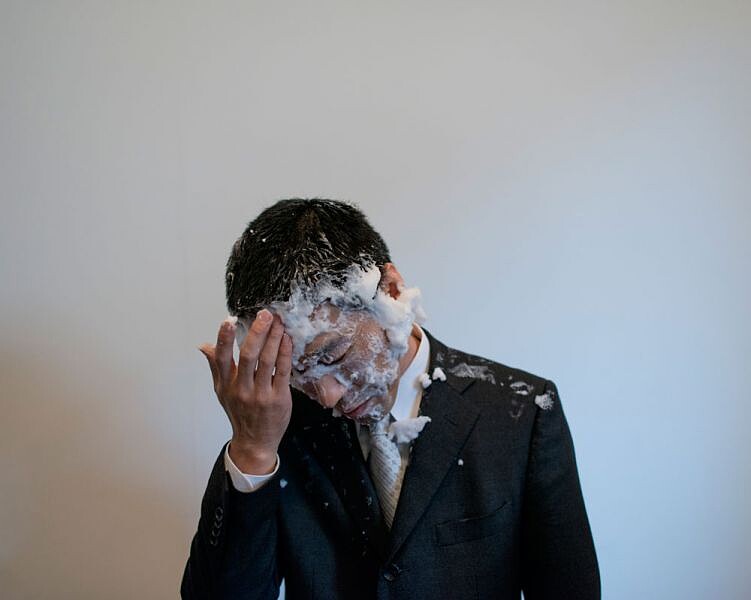 最後,鎮日的高潮終於來臨:對提出離婚一方的懲罰,我們看到里紗站了起來,拿著盛滿鮮奶油的盤子砸向淳,沉迷於復仇快感的她,又拿起奶油砸向前夫。看著他滿臉都是鮮奶油,她綻開微笑、甚至笑了出來。淳必須維持這樣可笑的姿態十分鐘,鮮奶油緩慢流淌在他的西裝上。這都是儀式的一部分,儘管這令淳不快,但里紗卻覺得心裡舒坦多了,她說,「我鬆了一口氣、開心了些,並準備好邁向人生下一個章節。」寺井先生接著解釋,「別誤會我,我知道離婚是個悲傷而痛苦的過程,但公開宣告展開新生活的決心,卻能夠讓你的心更為強壯。」