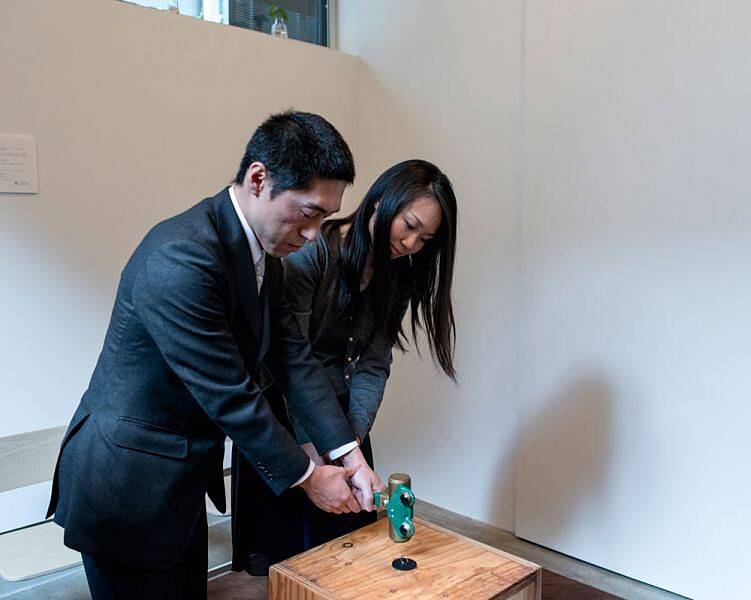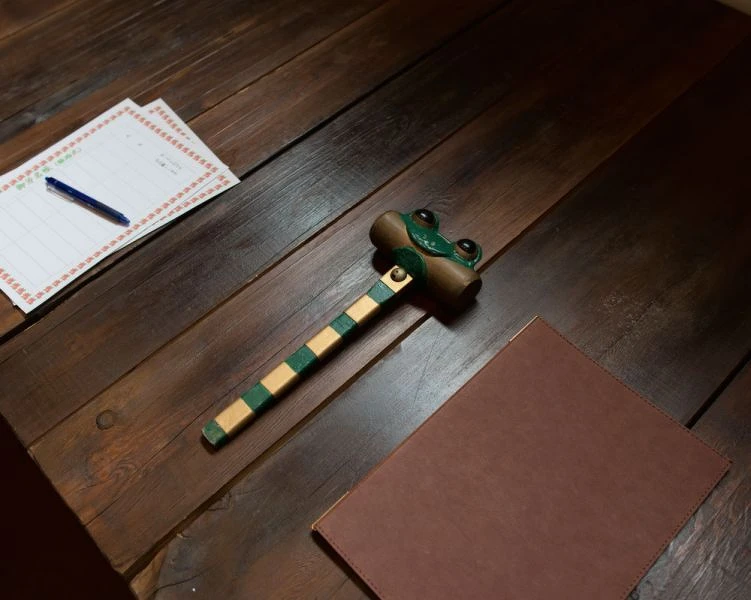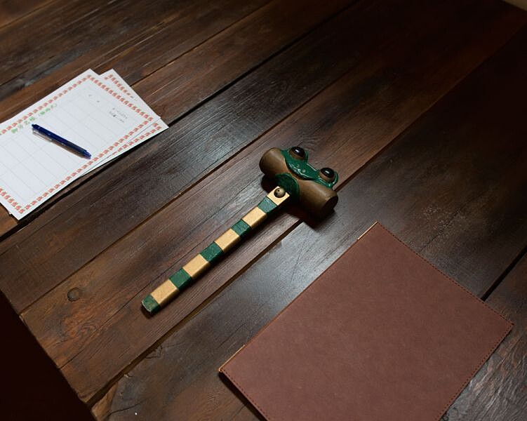 隨後,協助離婚的寺井先生指著裝飾在鐵鎚上的青蛙說到,「蛙類在成熟前經歷了一段不可思議的轉變,我們人類有點像牠們。在日文裡,『kaeru』同時意味著『蛙』和『改變』。當有隻青蛙跳進生命裡,就彷如兩位今天所遭遇的過程,此時正是個把握時機、往前進化的機會。」