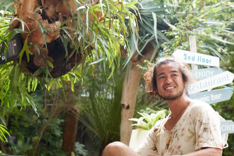 因為家裡從事植物批發商,從小就生活在綠意間的男孩,在高中畢業後到澳洲念語言學校,南半球特殊的植栽景致打開了他的眼界,就此開始迷上旅行。21歲時,他以背包客的身分飛往東南亞,無意間在婆羅洲遇見了全世界最大的食蟲植物,讓他開始對珍稀植物產生濃厚興趣,甚至為了採集「夢幻植物」,爬上斷崖也不以為意。而後他回到日本,在家族企業-植物批發商「花宇」底下工作,幾年後成為了第五代傳人,並於2012年創立了「天空植物園」。