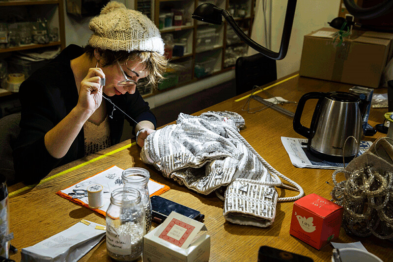 裁縫仔細縫補好每個亮片,雖然這樣的小地方不是人人會注意到,但保持每個環節的完美,正是紅磨坊遠近馳名的原因。