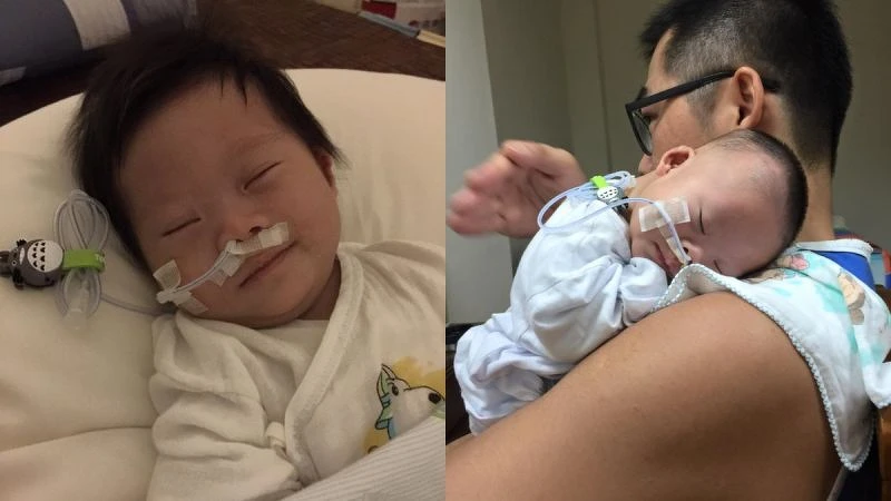 一度孩子怎麼餵奶怎麼吐,她急到哭,後來才知道唐寶寶喉頭軟化,吞嚥困難,天生心臟不夠力每次吸奶都很痛苦。碩碩六個月大時動心臟手術,小小的身軀捱過八小時的刀。戴鼻胃管用針管餵奶,一路戴到九個月大才拔掉自主進食。他一關一關挺了過來,從三個月大才五公斤重,一點一滴拉拔到如今兩歲半。.jpg)