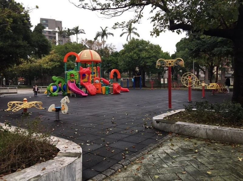 (改建前的北投立農公園,採用標準化罐頭遊具和塑膠地墊)
